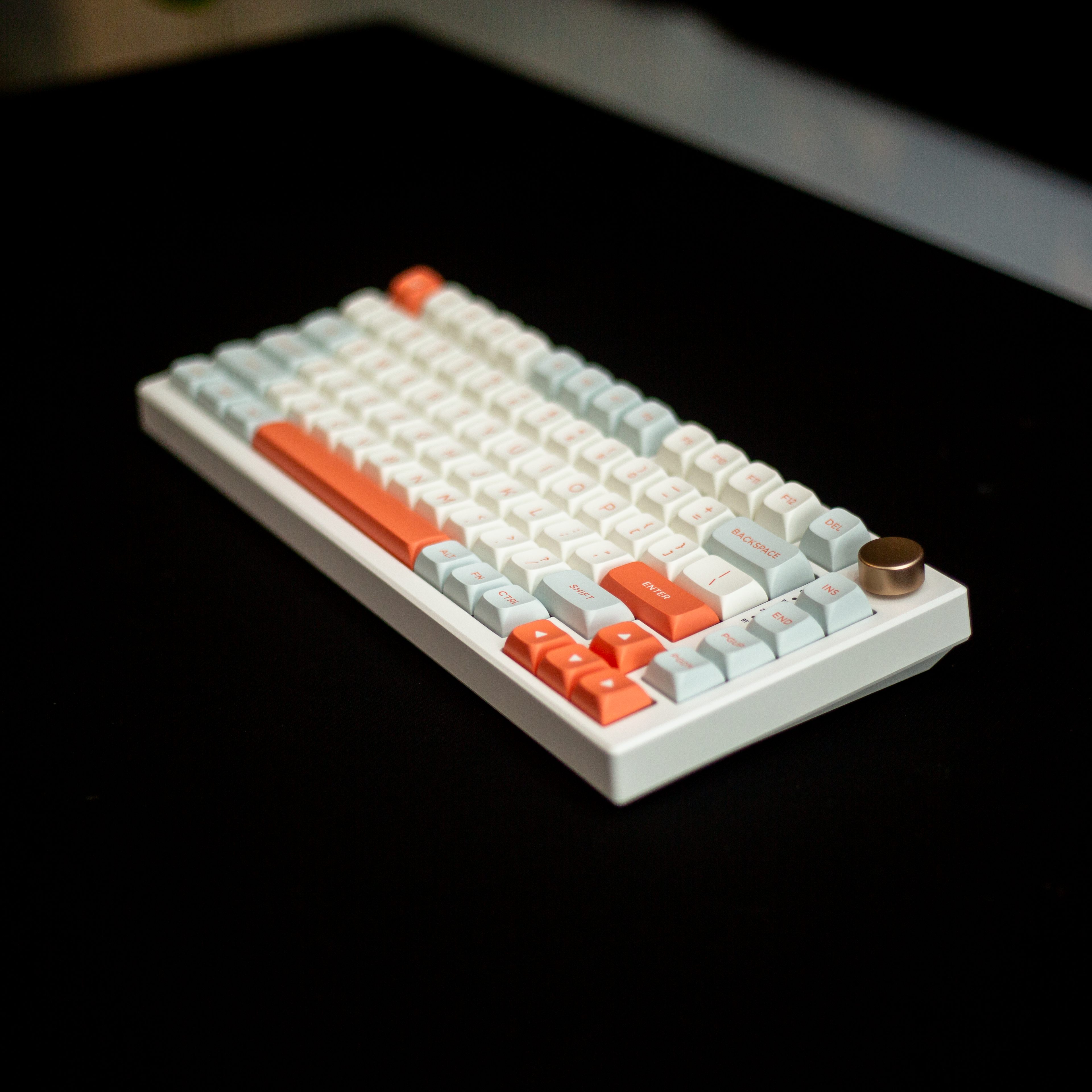 VGN N75 Pro sở hữu layout 75% (82 phím), đi kèm nút xoay kim loại điều chỉnh âm lượng, mang đến cảm giác hiện đại và tiện lợi. Với màu Jelly Orange tươi sáng pha Vaporwave, sản phẩm tạo dấu ấn nổi bật trên bàn làm việc.