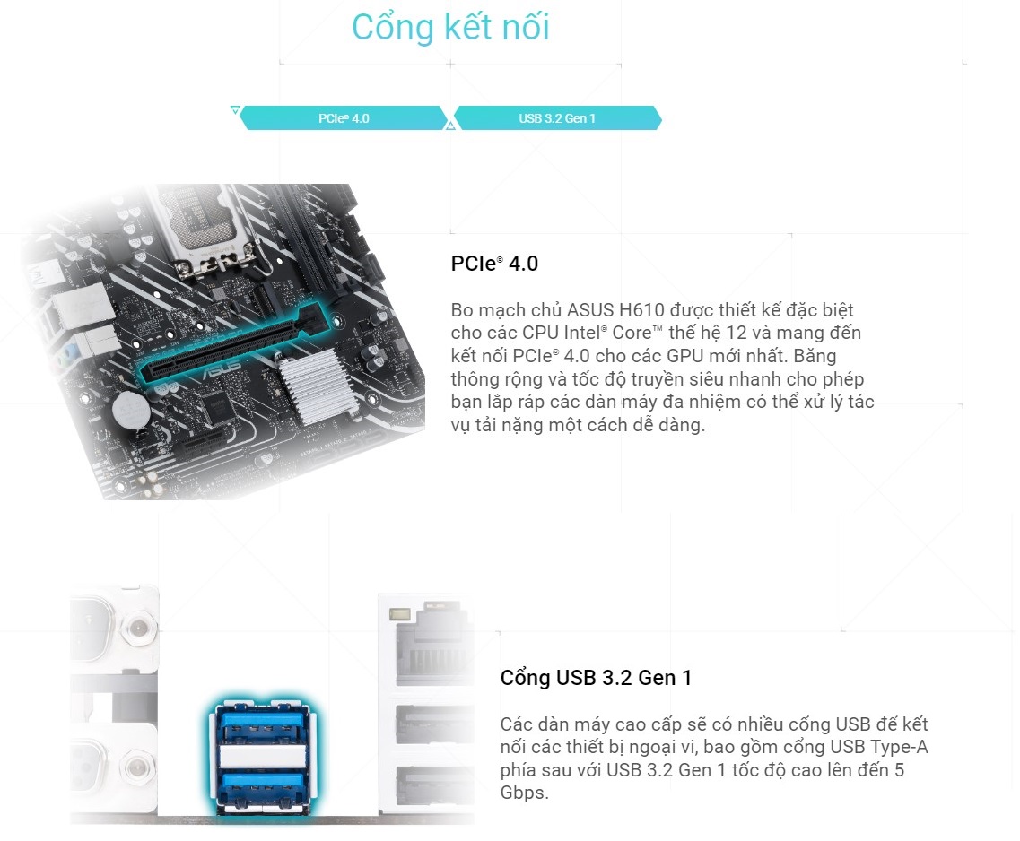 • Mainboard Asus PRIME H610M-K D4 hỗ trợ CPU Intel thế hệ 12 và 13, socket LGA1700.