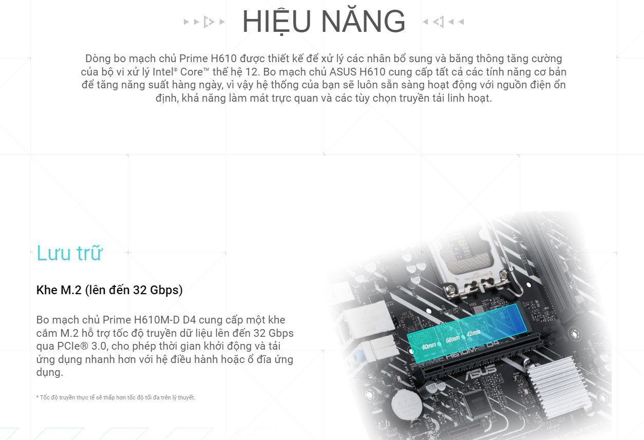 • Mainboard Asus PRIME H610M-K D4 hỗ trợ CPU Intel thế hệ 12 và 13, socket LGA1700.
