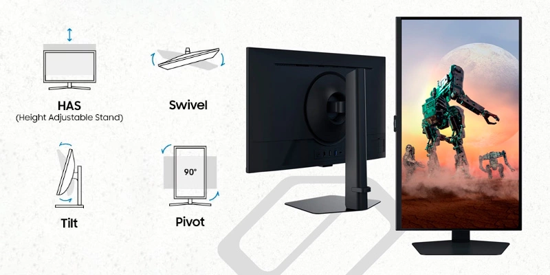 Màn hình Samsung Odyssey G5 G50D LS27DG502EEXXV được thiết kế với kiểu dáng hiện đại, viền màn hình mỏng giúp tối ưu hóa không gian hiển thị. Chân đế điều chỉnh độ cao, xoay và nghiêng linh hoạt giúp bạn dễ dàng tùy chỉnh góc nhìn phù hợp nhất.