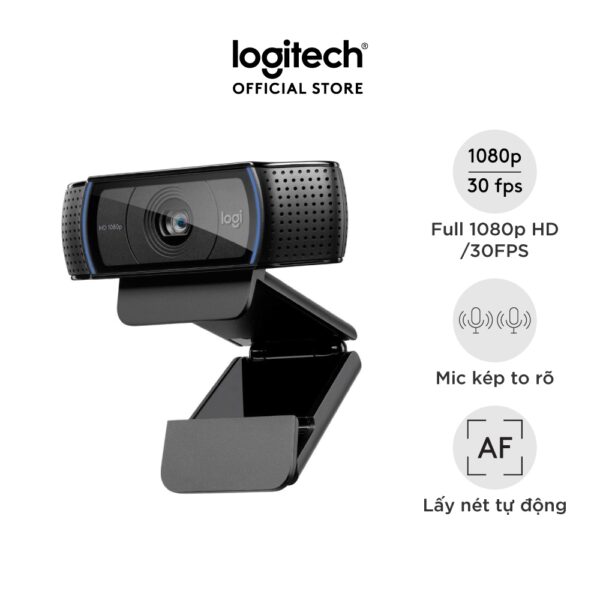 Full HD 1080p tốc độ 30fps Tự động điều chỉnh ánh sáng và autofocus Âm thanh stereo với 2 micro 2 bên FULL HIGH-DEF 1080P VIDEO CALLING Tạo ấn tượng tốt đẹp với chất lượng video đẳng cấp của C920, Dù bạn đang gọi hay quay video, bạn sẽ luôn xuất hiện trong khung hình sắc nét, màu sắc sống động với độ phân giải Full HD 1080p với tốc độ 30 khung hình/giây